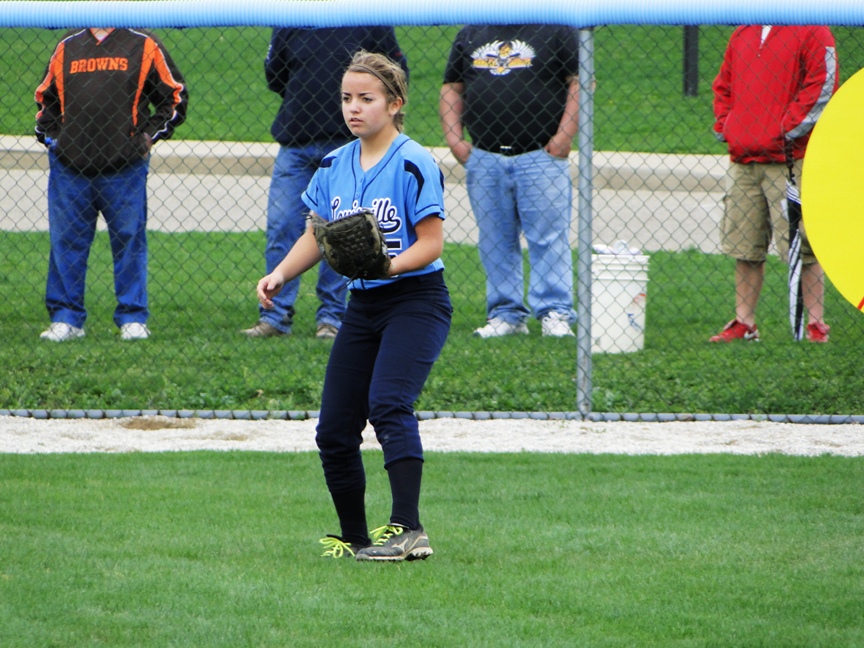 Before the game ended, Louisville used a 6-run fourth to break open the contest. The Lady Leps batted around the lineup and brought 10 hitters to the plate altogether. Monnot and Swigert each reached base after being hit by pitches and Baumgardner later brought them home with a 2-out single to start the scoring. Yes, once again Louisville shined brightly with two outs.