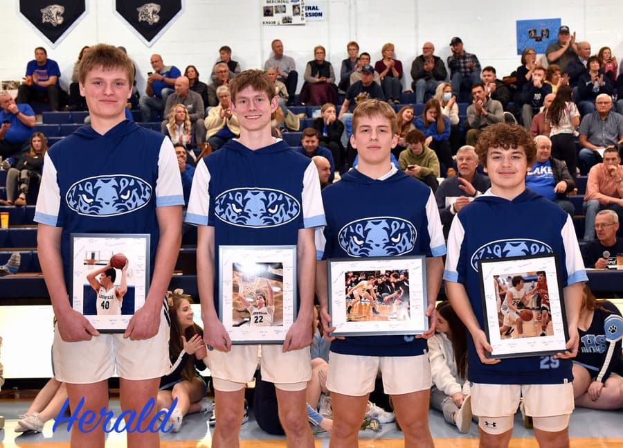 The Louisville Leopards Boys Varsity Basketball Team fell to the visiting Lake Blue Streaks 51-46 on Senior Night Tuesday at Louisville High School. The loss snaps the Leopards four game winning streak as they drop to 15-6 on the season.