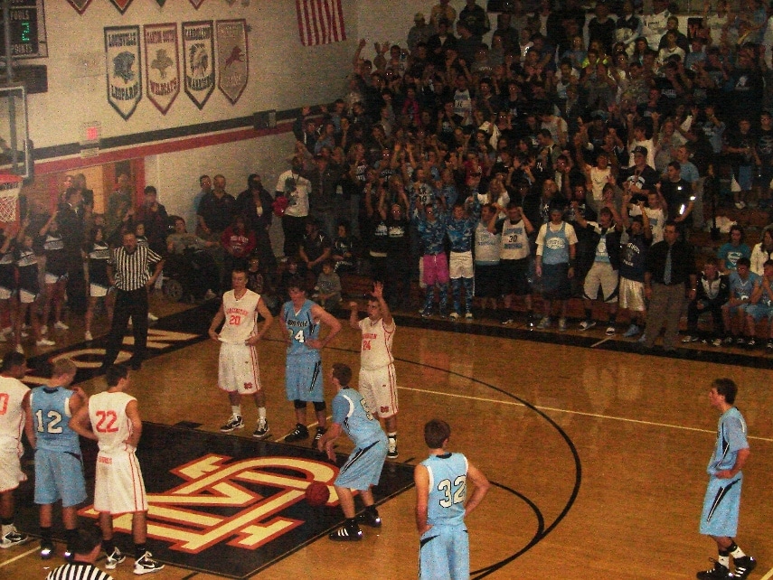 The Leopards put the cruise control on in the third quarter and let Marlington squeak back into the game. Six Marlington players scored in the period as they outscored Louisville 17-11. But, Toby Minster did take some of the momentum away from the Dukes by delivering a piercing block of Josh Draper’s shot. Minster finished with a double-double performance that included 13 points and 13 rebounds. Louisville headed into the final period up 8.